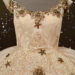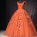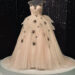 While working for Saks Fifth Avenue, Lowe designed this coral ballgown that is embellished with handmade flowers and crystals.