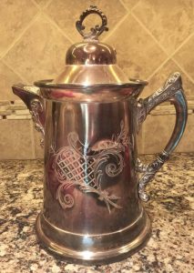 We decided that my brother-in-law John would be in charge of the doll, plus we “allowed” him to select an item of his own choosing to take along. He opted for a silver tankard, saying it would make his mother happy to get it appraised. We took inventory of our treasures and speculated that John’s tankard, which dates to 1850, would be the most valuable item among those we were taking.