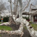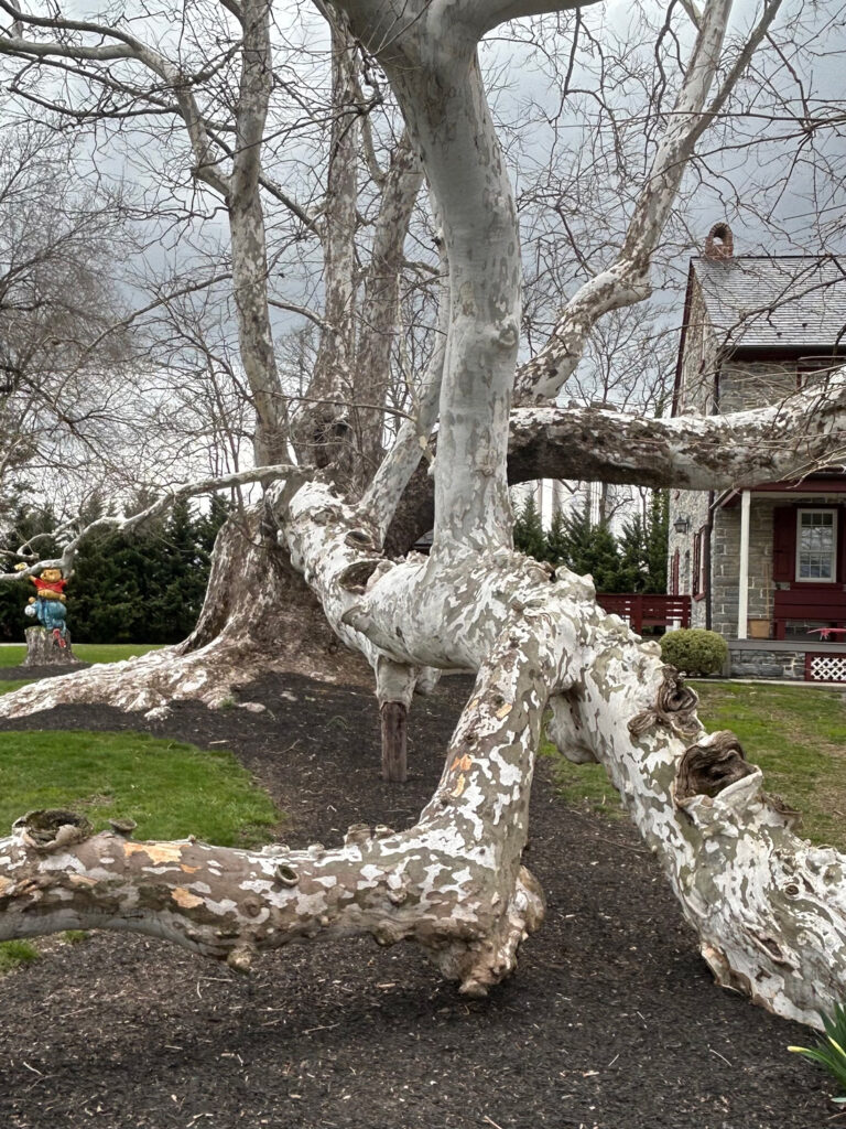 According to various websites, the sycamore, which is also known as a buttonwood and plane tree (the names of streets in the complex so honor its presence), is a fast-growing and resilient deciduous tree that can grow as high as 100 feet tall. Known for its distinctive, shedding/mottled bark, its botanical name is Plantanos (oriental plane tree) occidentalis (western). Europeans referred to it as “sycamore” because its foliage resembled that of the sycamores that grew in the British Isles. Native Americans relied on the tree’s wood to create canoes. It is native to southeast Canada and the central/eastern United States. As one website noted, “it’s a tree that commands attention.”