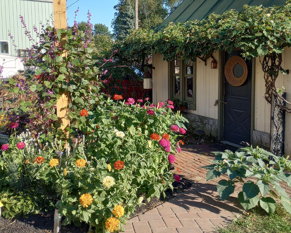 Joe & Deb Weisser: A variety of projects add a personal touch to the Weissers’ gardens. Look for the pond installed by Deb and the outbuildings created by Joe. The mostly sunny gardens feature a variety of colorful plantings. Featured artists: Kim Morrow & Peg Donnan.