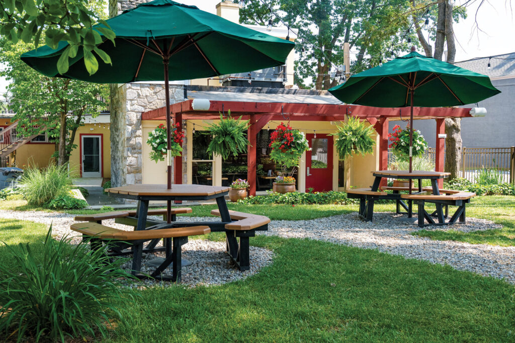 The restaurant was enlarged following a 2014 fire. “Prior to that we had talked about expanding; we turned a tragedy into something good,” Mollie says. The restaurant now seats about 95 indoors. An outdoor seating area that features stone pathways and picnic tables among the lush landscaping was added last year. It seats about 50; outdoor table service was added in May.