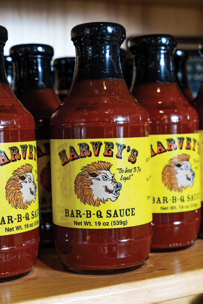 Of course, the sauce (or rub) defines the style and taste of barbeque. Harvey’s on Main utilizes the signature barbeque sauce – “tangy with a vinegar-butter base and ketchup-mustard flavoring” – its namesake developed.