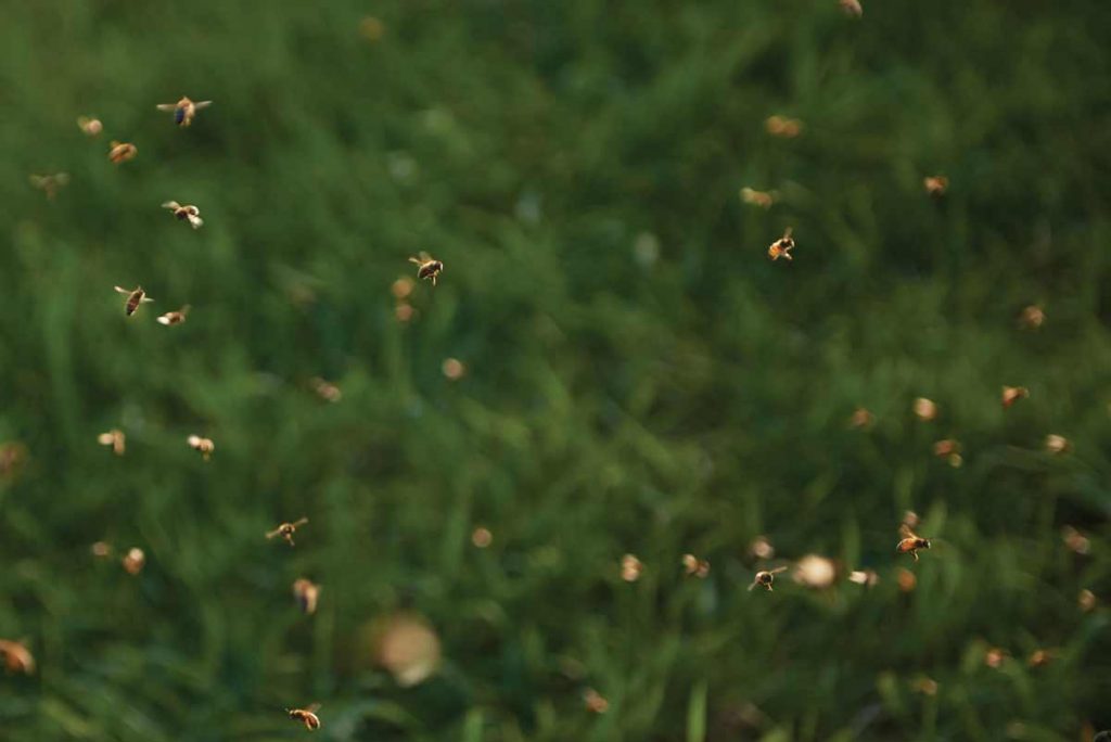 The successful virgin queen leaves the hive to mate with male drones from other hives on this one occasion. If she successfully returns – having navigated weather and threats, such as birds and dragonflies – the queen is set to lay thousands of fertilized eggs for up to three years.