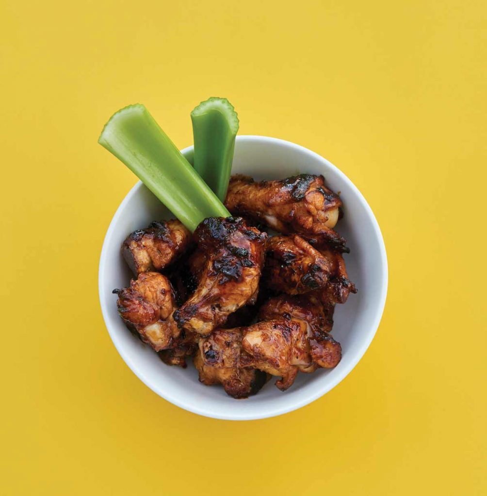 In making Detroit Hot Honey Wings, I needed a honey that is robust in flavor and would hold up to other ingredients. I chose Local Spring Wildflower Honey from Welch Mountain Apiaries in Gap. The chicken wings were marinated with honey that dripped onto hot charcoal embers, creating an aromatic appetizer reminiscent of floral marshmallow roasting over a fire as the sugar caramelized. Honey, butter, hot sauce and seasoning were added at the end. The result was a juicy, fall-off-the-bone tender wing with a semi-wet sauce. An addictive but delicate spice paired well with robust honey and smoke flavors.