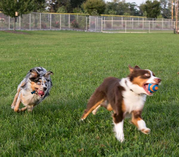 A lot of members attend daily, like Gene Garner, his wife and their two dogs, Trixie and Perry. “It’s really casual here,” Gene shares. Member Jim Cummings, who also has two dogs, Candee and Riley, likes the fact that Dog Park Mount Joy has “responsible owners. All dogs here have had their shots, members have homeowners insurance, and the people here really care about their pets and keep an eye on them.”
