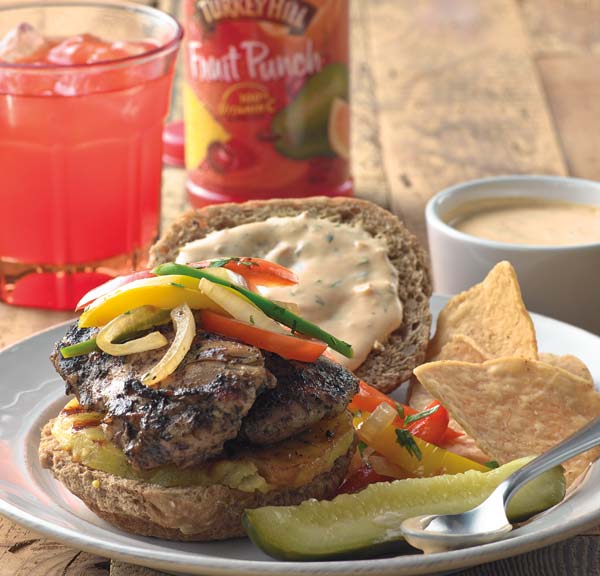 If you’re looking for a beverage that can be enjoyed by all at your party, why not have fun pairing that summertime favorite, iced tea, with your menu. Using the same simple reasoning as would be employed with wine pairings, I selected Turkey Hill beverages whose flavors would complement the theme of each sandwich or ingredients that were used in the preparation of them.