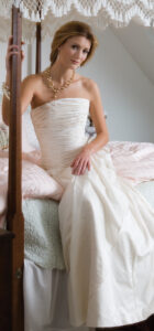 After graduating, Janell headed west, where she aimed to work for Disney (costume design) but instead became a designer at Elegance of Paris on Rodeo Drive in Beverly Hills, where her custom cocktail dresses were in high demand. Moving to Newport Beach, Janell began to experiment with designing wedding gowns and ultimately shared one of her designs with a buyer from the Bullocks-Wilshire department store. Although impressed, the buyer expressed more interest in debutante gowns. However, the interaction led to bigger things, notably working with the bridal salons of I. Magnin, Saks Fifth Avenue, Neiman Marcus and other upscale stores. Janell became a bride herself with her marriage to Richard Wood, whom she met on a blind date.