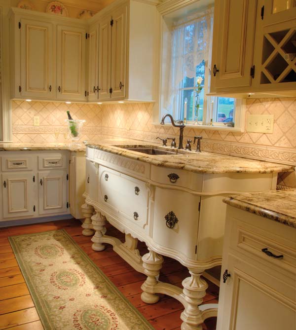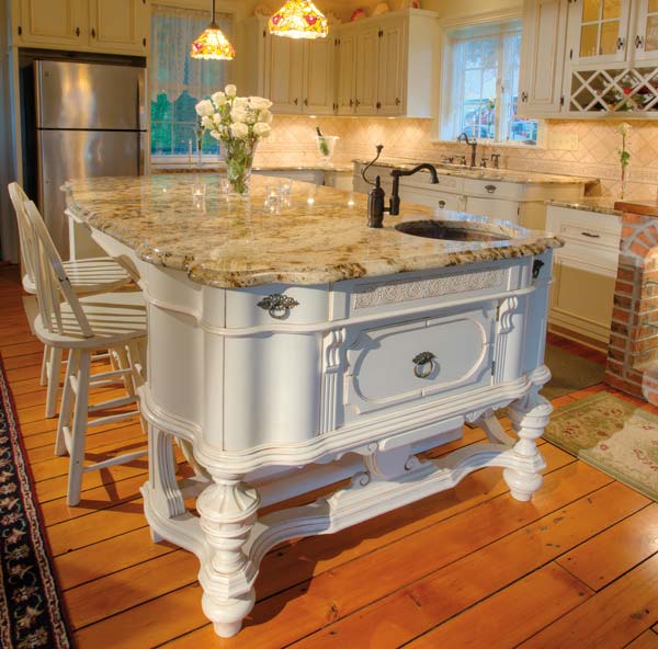 Bob completely remodeled the farmhouse, replacing the electric and plumbing systems, adding a modern bath, and updating the other rooms. He wanted to do something really special with the kitchen. Inspiration struck while Bob was attending a consignment auction in Maryland. “I saw this dining room suite and the idea occurred to me that I could use it as kitchen cabinetry,” he recalls. “So, I called Kevin Leaman, who was working on a project for me at the house, and asked him to take some measurements.”