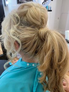 With Covid restrictions lifted, one service that has made a comeback is hair and makeup for special events. “Weddings are back with a vengeance,” Bobbi notes. Because weddings are in catch-up mode, she reports they have been “happening every day of the week.” Glamour Room has been helping bridal parties look their best by providing services in the salon or on-site. “All the venues now have wonderful get-ready facilities,” Bobbi has come to discover.