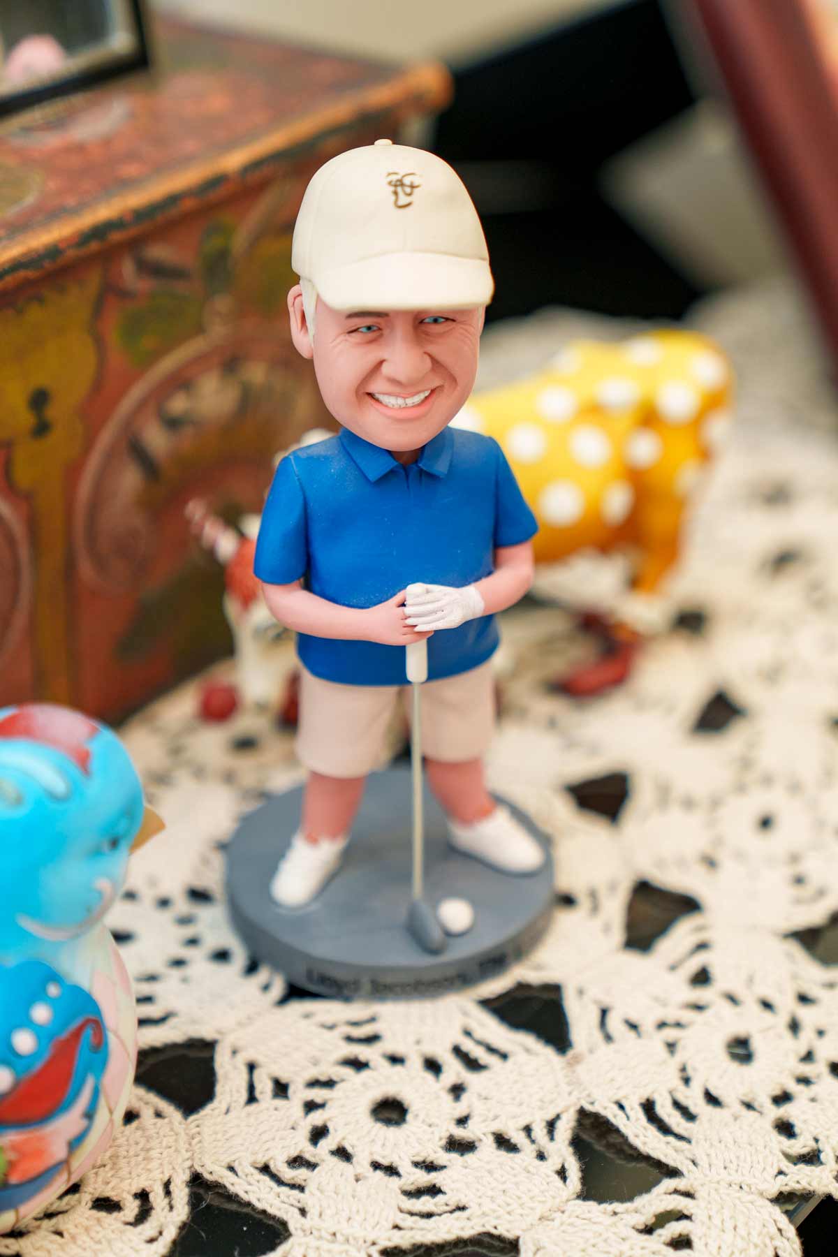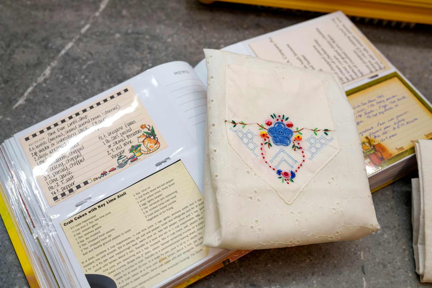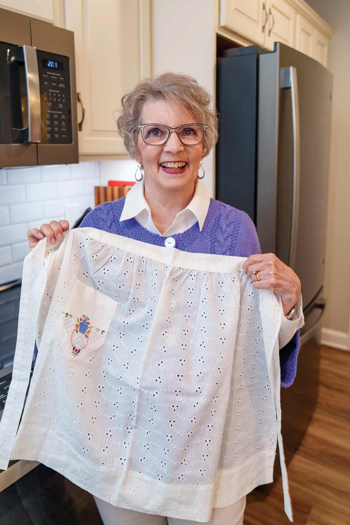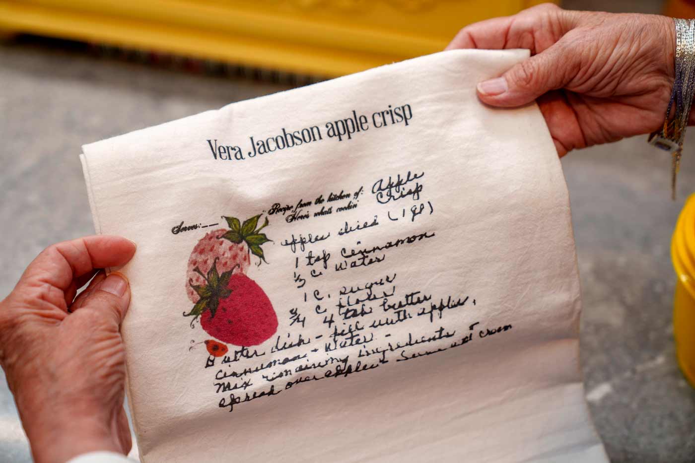 The décor of their cottage includes many nods to their family heritage. Lloyd’s pride and joy is an antique steamer trunk that belonged to his grandfather; it’s filled with memorabilia from Lloyd’s childhood in Iowa and precious antiques and photos passed down through his family. Many paintings done by Lloyd – he’s a landscape architect by trade who enjoys art as a hobby – hang throughout their home. Their hobbies are also well represented. Lloyd’s den reveals his love of golf through flags that serve as mementos of major tournaments they have attended. Brenda loves to cook and bake, hence her hobby is represented by a (downsized) collection of cookbooks, vintage aprons and other items.
