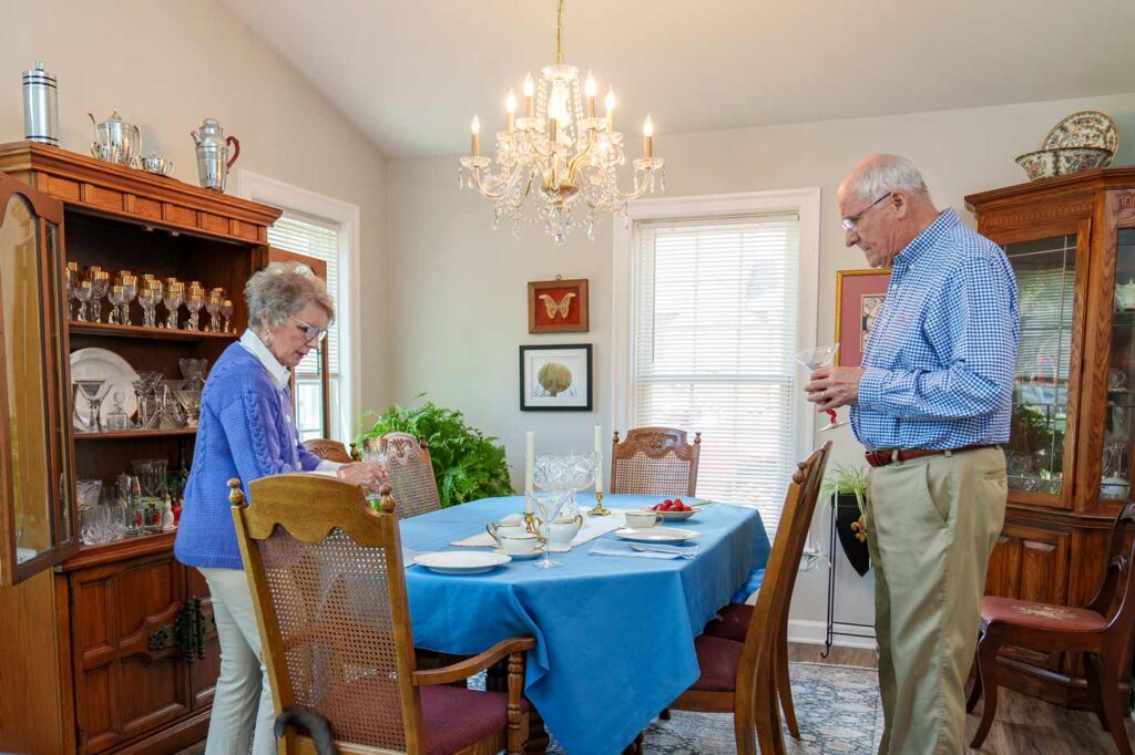 In making the move to Luther Acres, the Jacobsons were prepared to downsize and start a new chapter in their lives. They agree that the transition was made easier with help from Beyond the Fork in the Road, a locally owned business that specializes in assisting older adults in downsizing or moving. A representative met with the Jacobsons to help determine how their furniture would make the transition to the new floor plan. “They measured everything, and they figured out what we could take with us,” says Brenda. The couple was thrilled to be able to bring pieces such as their china hutch, corner cupboard, a beloved grandfather clock and more to their new home. Except for purchasing a new sofa and a chair, they were able to furnish their cottage entirely from their former home. “At first blush, it’s overwhelming to think about the move, but then you get your head around it,” Lloyd remarks.