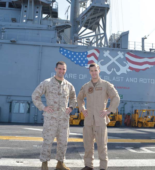 As predicted, it has turned out to be quite a blessing not only for Jon and Chris, but also for Sailors and Marines who never would have “blended” without these two as a sort of catalyst. “I hate to sound cliché but our relationship as brothers has kind of helped bring the blue and green together. We have made friends with each other’s friends and interacted with people who we wouldn’t have otherwise interacted with,” Chris notes. The wardroom aboard a deployed amphibious assault ship has the tendency to mimic a high school cafeteria. Navy officers associate with those of their own warfare community, and the Marines do the same. It typically takes pre-existing relationships for that trend to be bucked, which is exactly what the Hemlers have done.