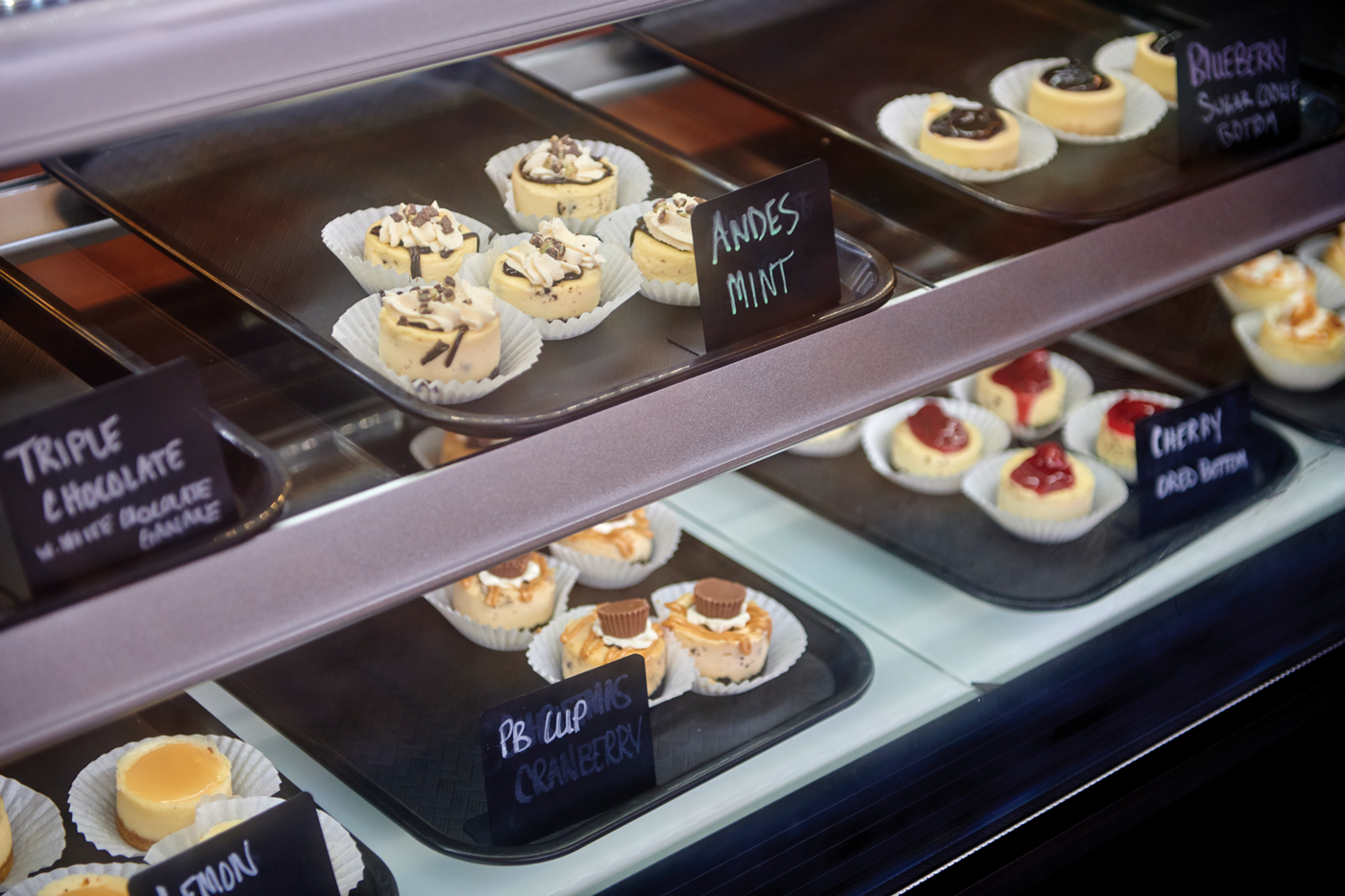Kelly and Sasha’s cheesecake recipe book has reached into the triple digits, featuring a regular rotation complete with seasonal specialties. Flavors such as Fruity Pebbles, Banana Pudding, Andes Mint and Double Peanut Butter Cup are playfully named treats that both dazzle the eyes and tempt the taste buds.