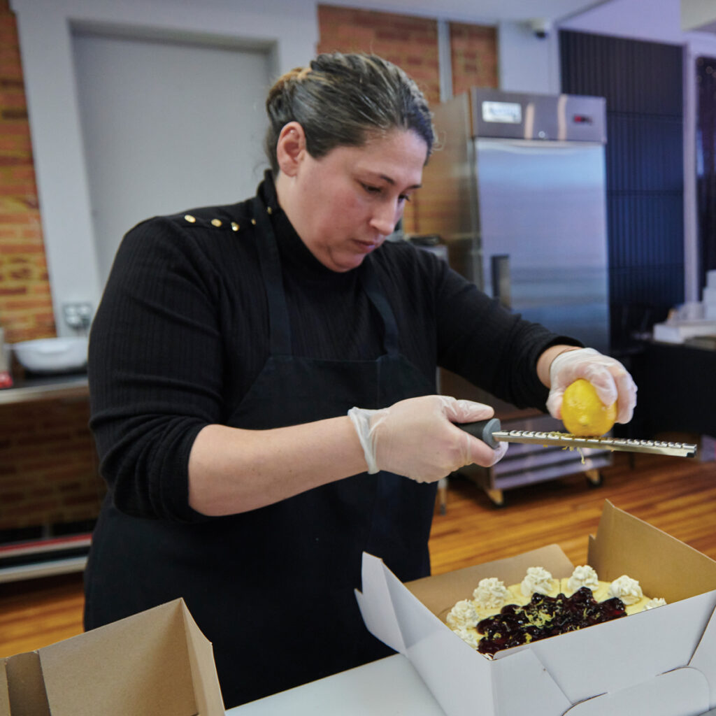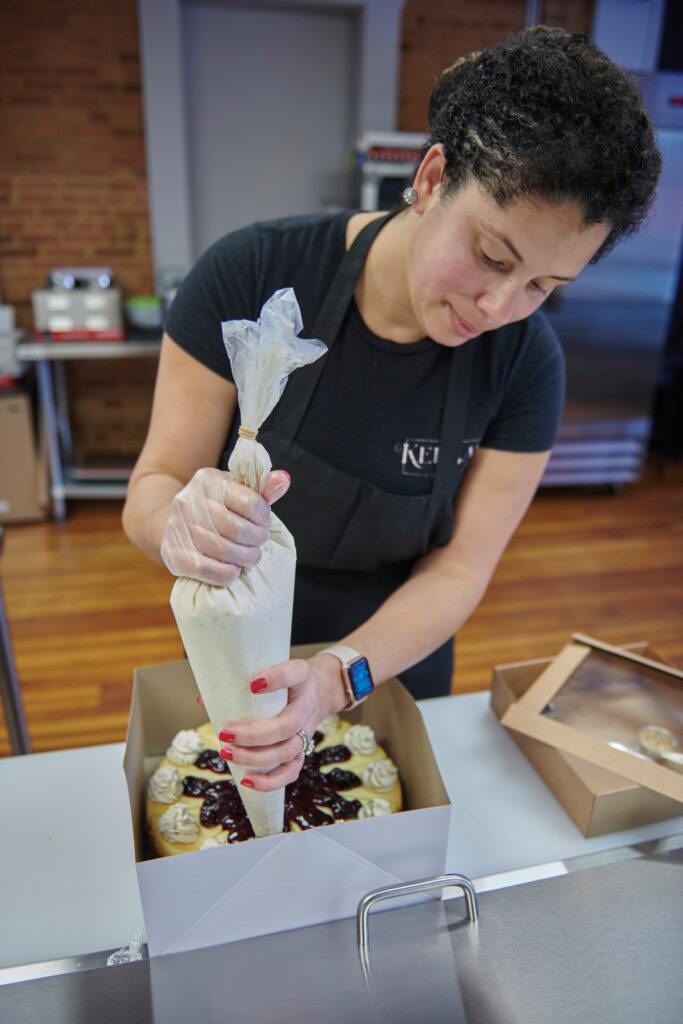 Their cheesecake recipe was born in Sasha’s kitchen. “Three years ago, at the very beginning of Covid, I started to work from home, and we began to bake,” Sasha says of collaborating with Kelly. “I posted the picture of the first order, and it never stopped. In the morning, on my way to work, I would call Kelly and we would talk about our ideas, how we would start.” They made that all-important first step by meeting with SCORE and gaining a mentor.
