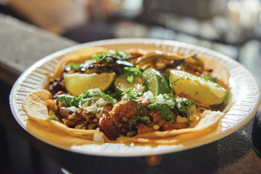 On the day of Taco Night, the restaurant operates as normal, while meat prep for the evening event concurrently takes place, removing chef Erik from the roster all day long. Preparation of slow-cooked meats starts around 5 p.m., with the rotisserie heating up around 7:30 p.m. At 10 p.m., the line outside starts to form. For the next three hours, as many as 200 taco fans embrace the tastes of Mexico City. Clean-up concludes by 3 a.m. With no rest for the weary, the staff will be back to work the next morning at 10 a.m.