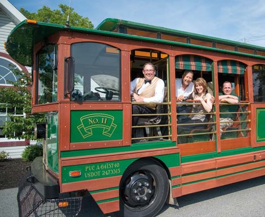 Now you can see Columbia via the RiverTowne Trolley Company. Aboard the trolley is conductor/owner Andre Underhill, tour guide Paul Fahringer, owner Kelly Underhill, and Columbia History Preservation Society Director Chris Vera. For details, visit parivertowns.org.