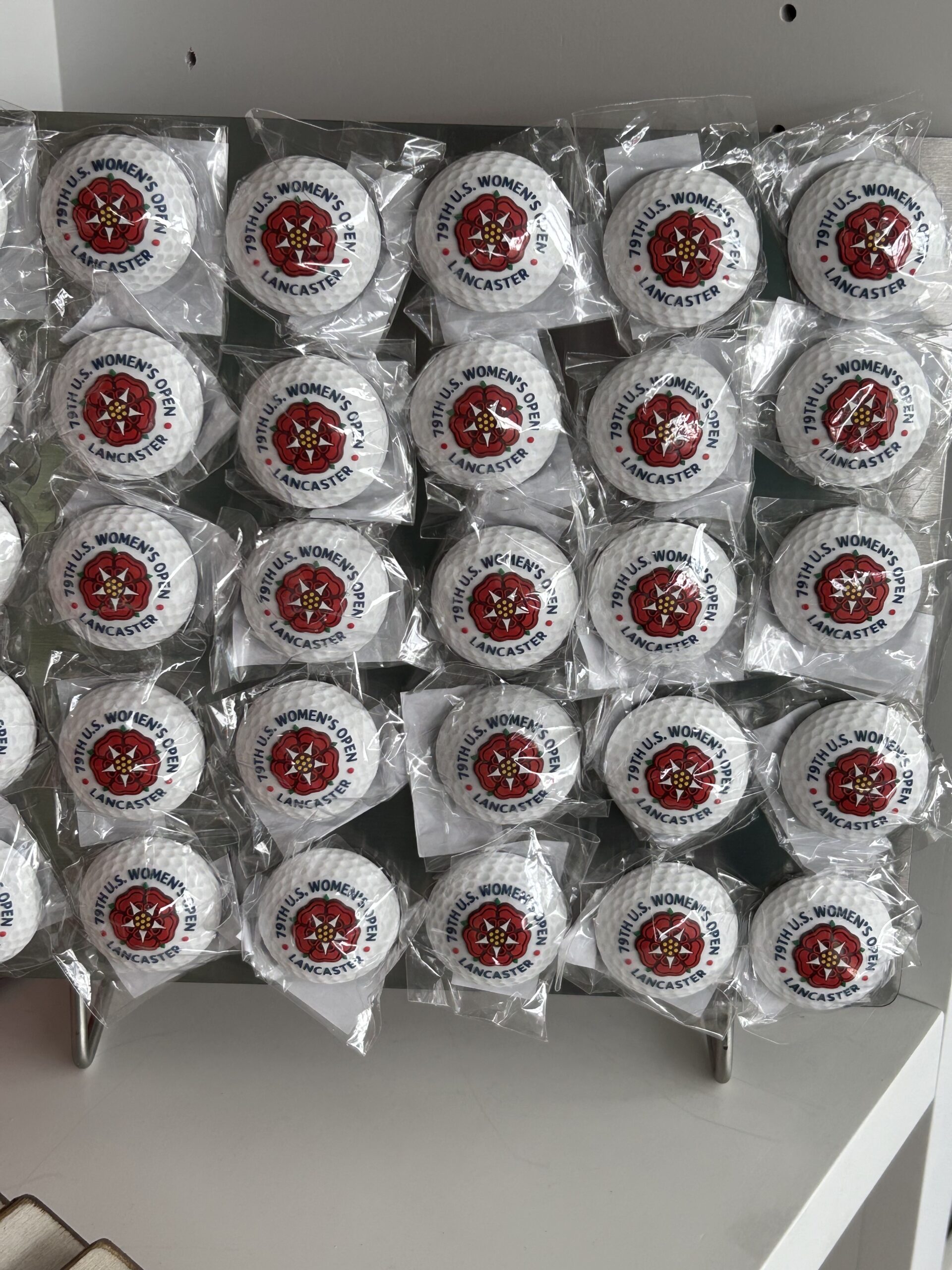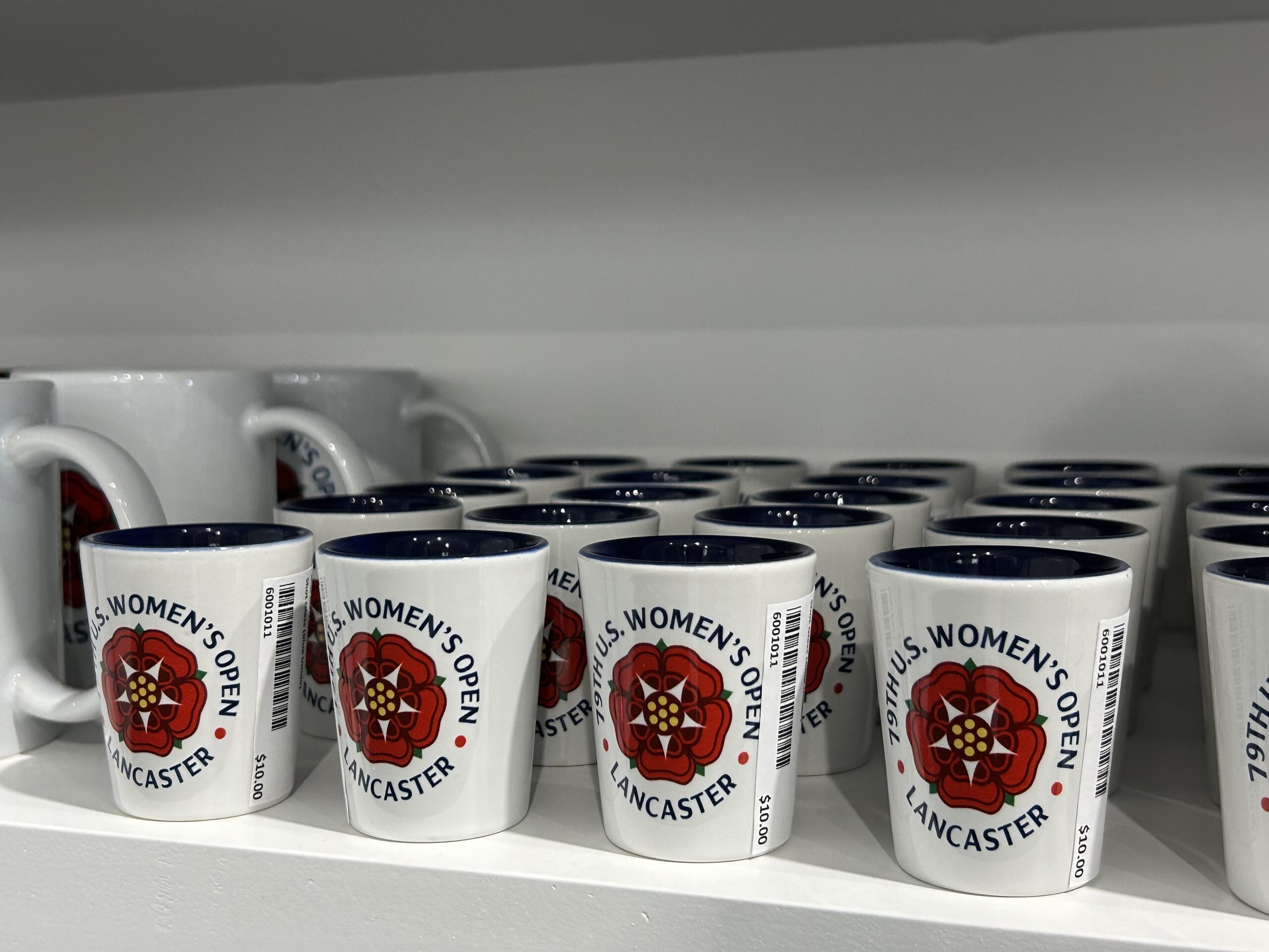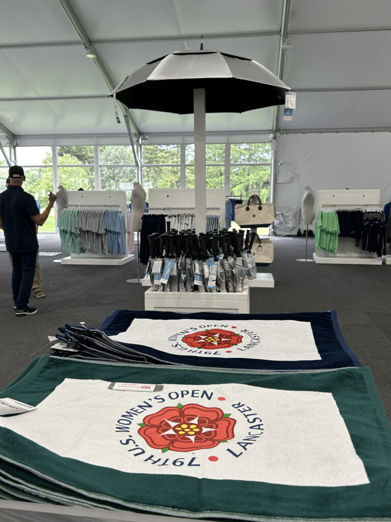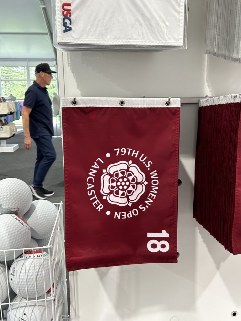 All items bear the logo for this year’s event. Julie shares that the logo is somewhat different from past years. “Usually, the logo includes the host club’s logo, but Lancaster Country Club wanted it to be about the community,” she explains. Hence, the USGA came up with a floral motif that might be described as a “Dutchy” red rose.
