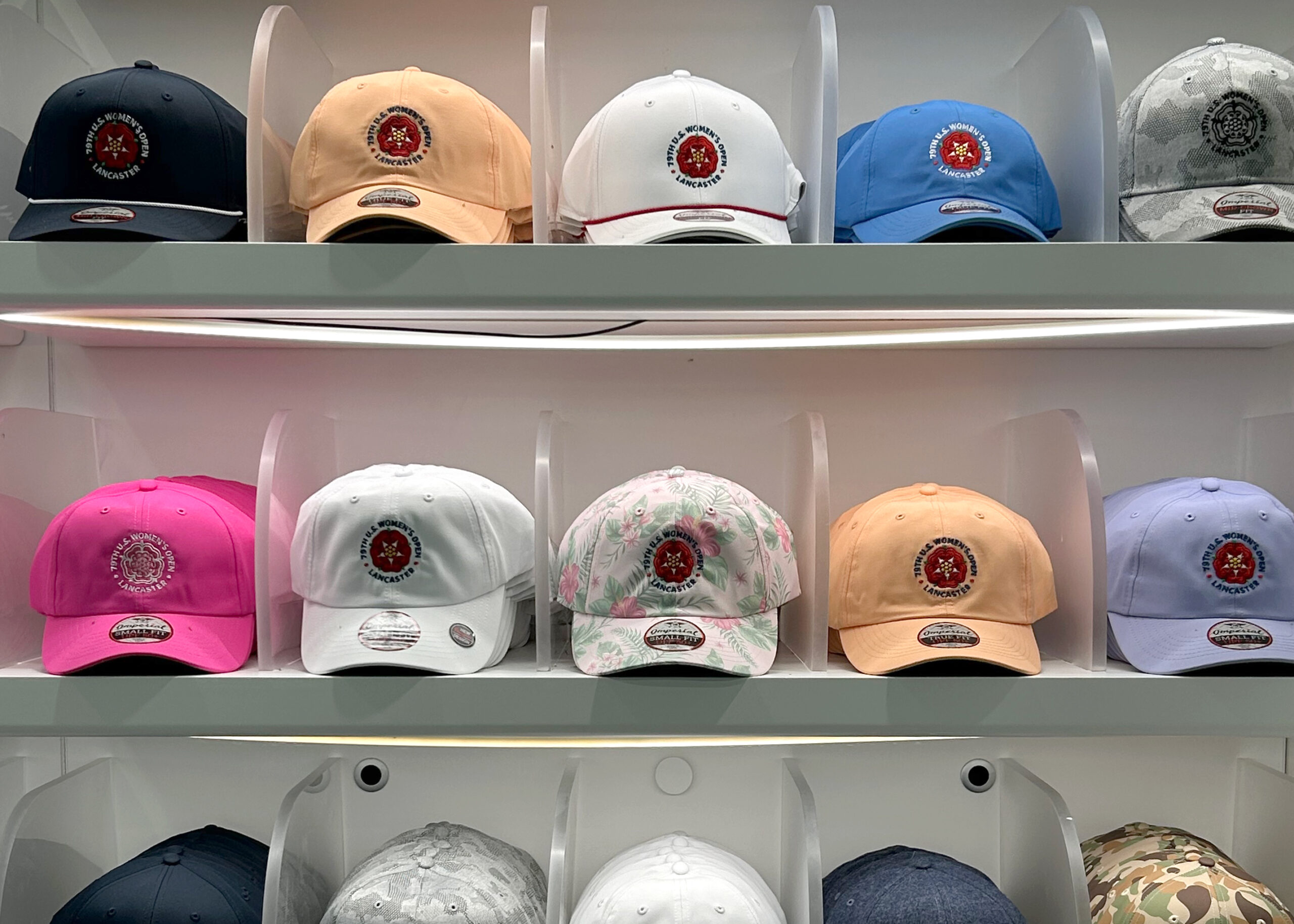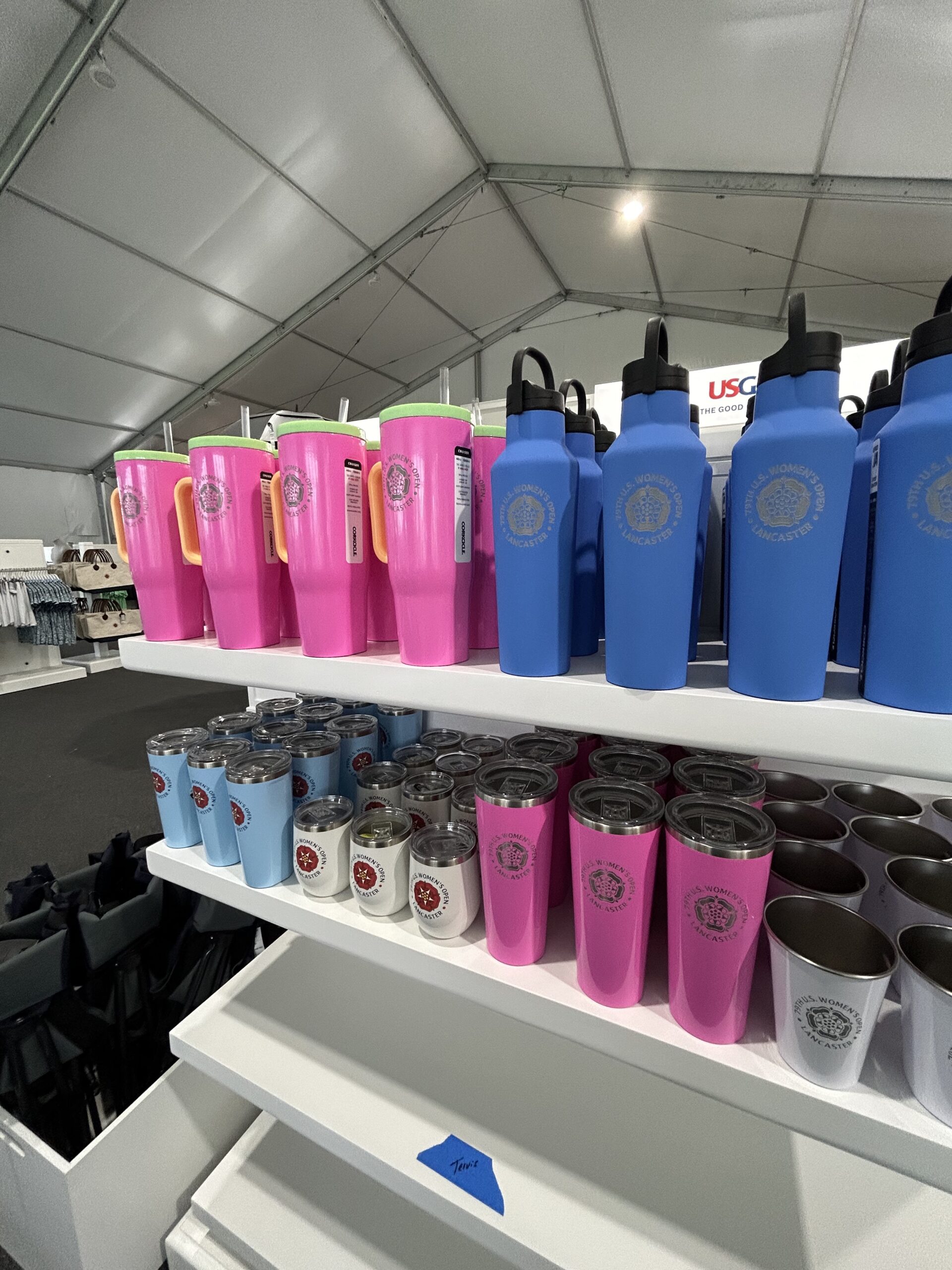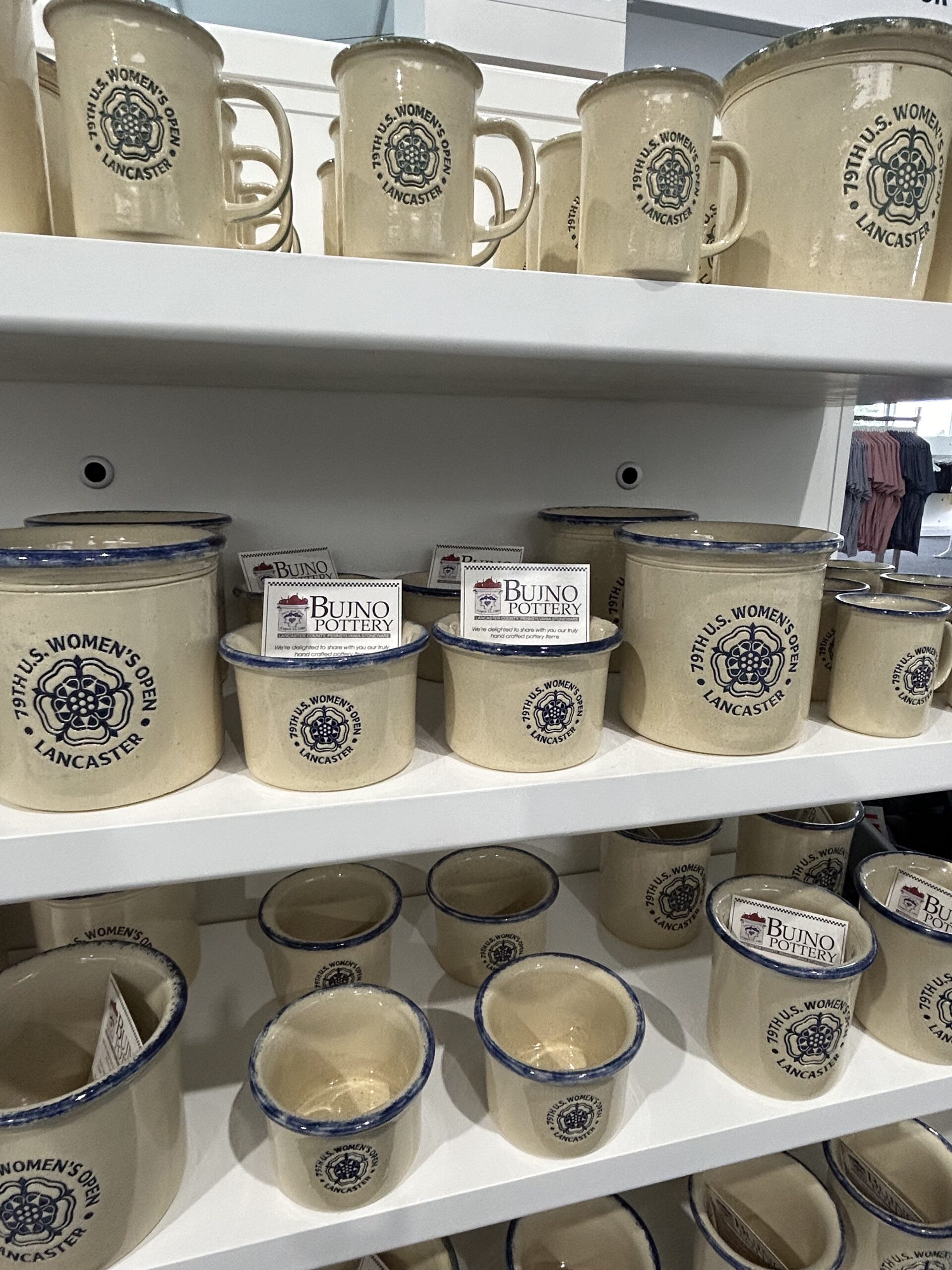 All items bear the logo for this year’s event. Julie shares that the logo is somewhat different from past years. “Usually, the logo includes the host club’s logo, but Lancaster Country Club wanted it to be about the community,” she explains. Hence, the USGA came up with a floral motif that might be described as a “Dutchy” red rose.