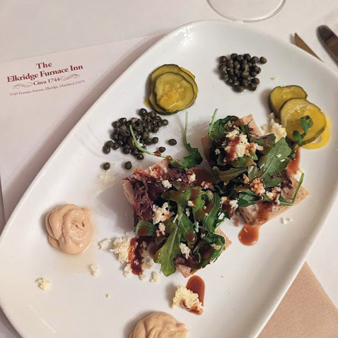 Overall, the entrées appearing from The Elkridge Furnace Inn kitchen can be best described as localized, rustic French, somewhere between haute and provincial cuisines. The emphasis is on quality ingredients and seasonality, but there is a definite homage to necessity and invention.