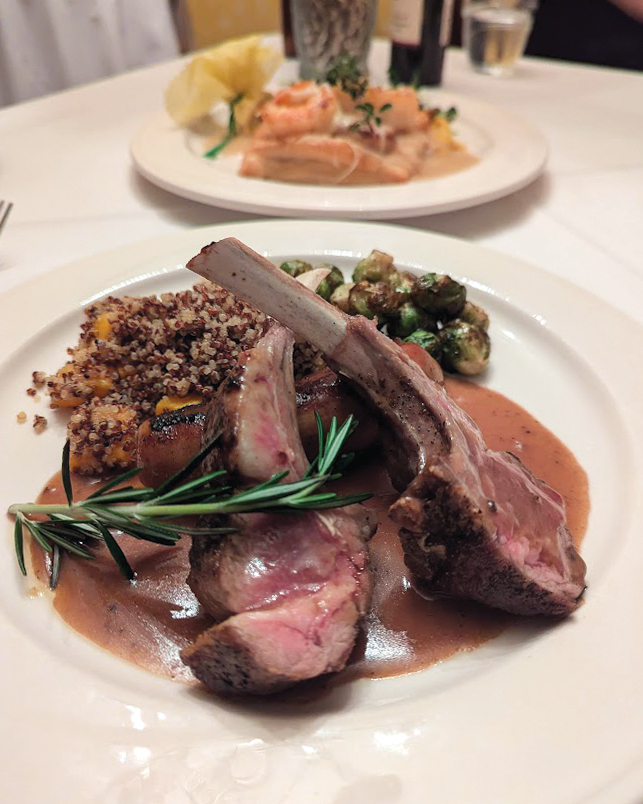 “This is Dan’s signature dish,” says Donna, who has joined us at an upstairs table. “This is far superior to any cream of crab soup. It’s crab soup with a twist.” Chef Dan learned the recipe for his Cream of Baltimore soup from retired Charm City chef, Debbie Crabtree. The soup is based on two of the colors of the Maryland flag. Potato leek represents the white and sweet potato curry crab is the gold. “They are both good soups by themselves, but when you put them together, they become Cream of Baltimore,” explains Dan, as I sip from a complimentary sample portion … and wished I had more!