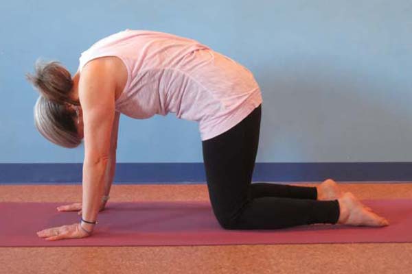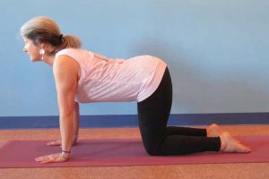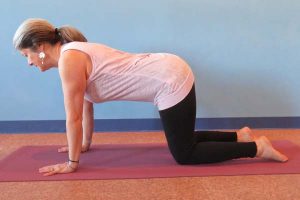 Start in tabletop position with shoulders over the wrists and hips over the knees.