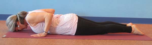 Exhale, lower torso. Do not strain or push strongly with the hands.