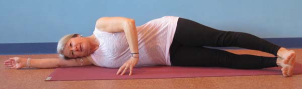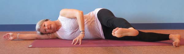 Continue for 8-10 breaths alternating sides; notice how each vertebra rolls off and back on to the floor.