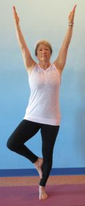 Place left heel at ankle or calf. Gently push the standing leg towards the lifted heel or foot. Shoulders and hips stay square. Arms to side or overhead.