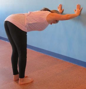 Using the wall for support, place heels on the wall and hips close to the wall.