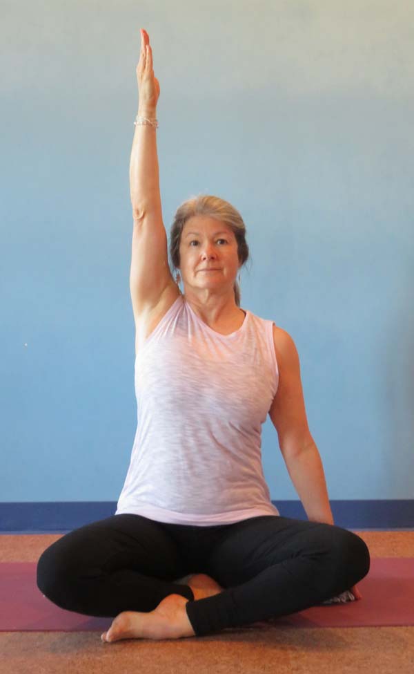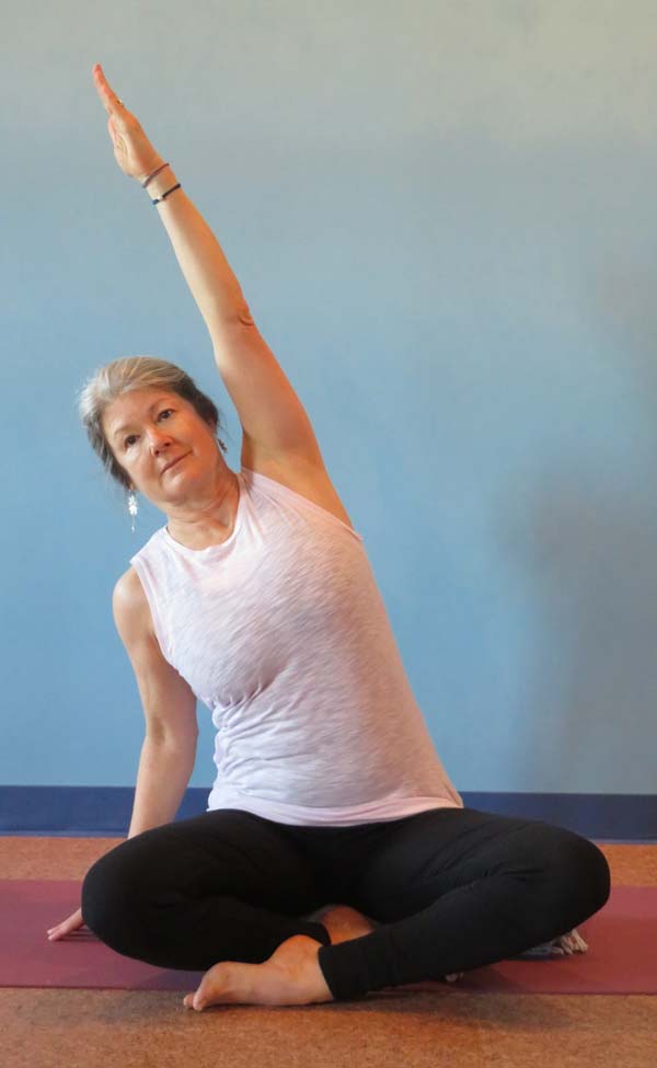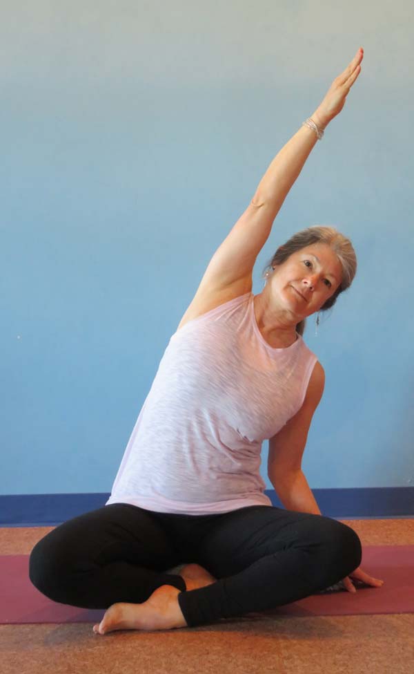 Reverse sides continuing for 8-10 breaths, feel the side of the body stretch from ear to hip.