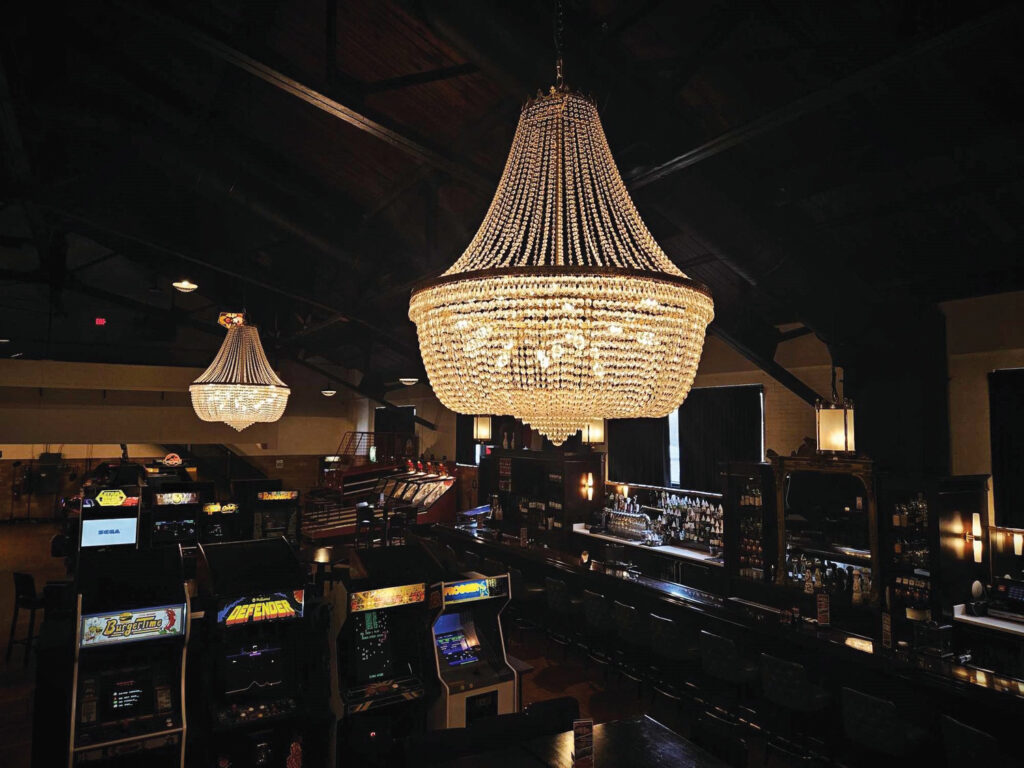 If you’re a fan of the Netflix series, House of Cards, you may recognize a number of décor items from the show at Decades, including chandeliers, lighting above the bar and the bowling desk, the fireplace mantel in the arcade area and a telephone booth in the entry way. Jonathan reports that another high school friend was part of the House of Cards production team and when the show ended, set props, which were stored in a warehouse in Maryland, were slated to be sold at auction. Knowing his friends were in the process of launching Decades, he let them know about the treasure trove of items that was available. “We walked into this warehouse that was filled with items from the show and were able to find some things that worked for Decades,” Jonathan explains.