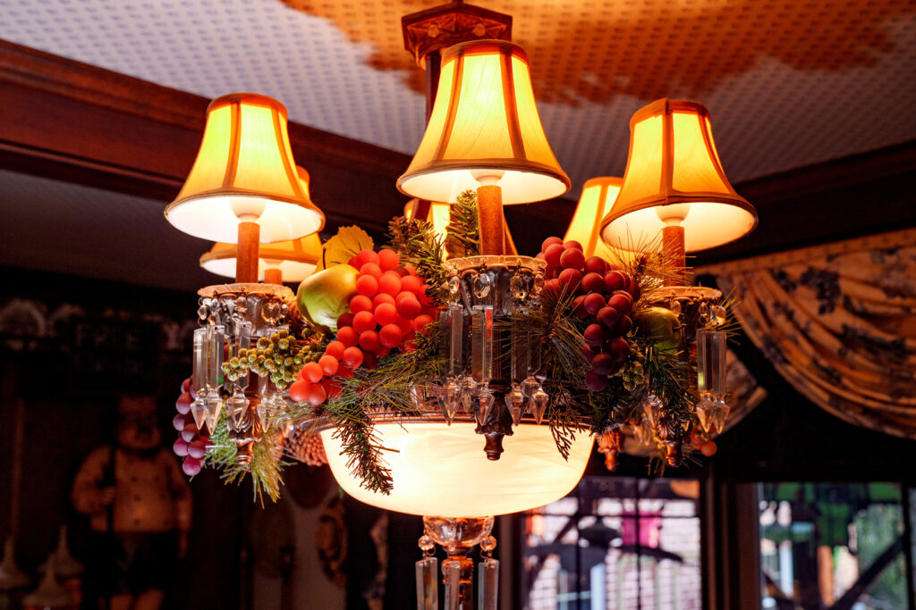 The fruit theme that Andrew employed for the breakfast room tree continued with the chandelier.