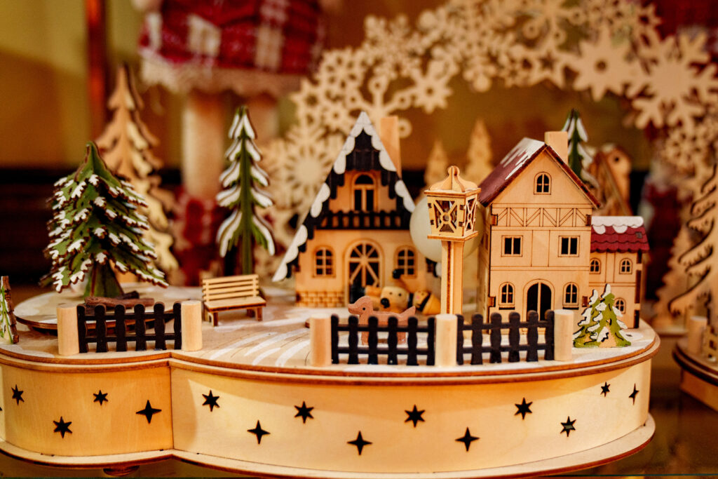 Artsy & Artisan: From ornaments and other holiday décor, there’s just something about items that are handcrafted. One of Andrew’s trees is decorated with wooden ornaments made in Germany.