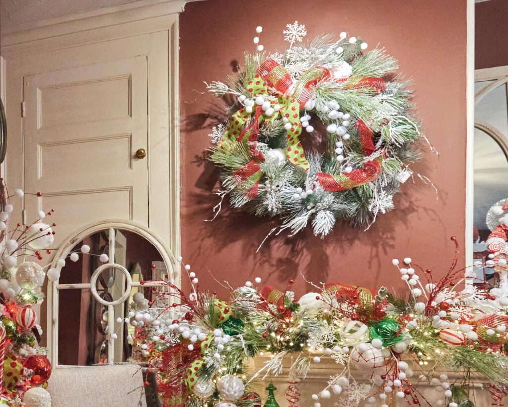Don’t Forget: Decking the halls extends to staircases, mantels, tabletops and chandeliers!