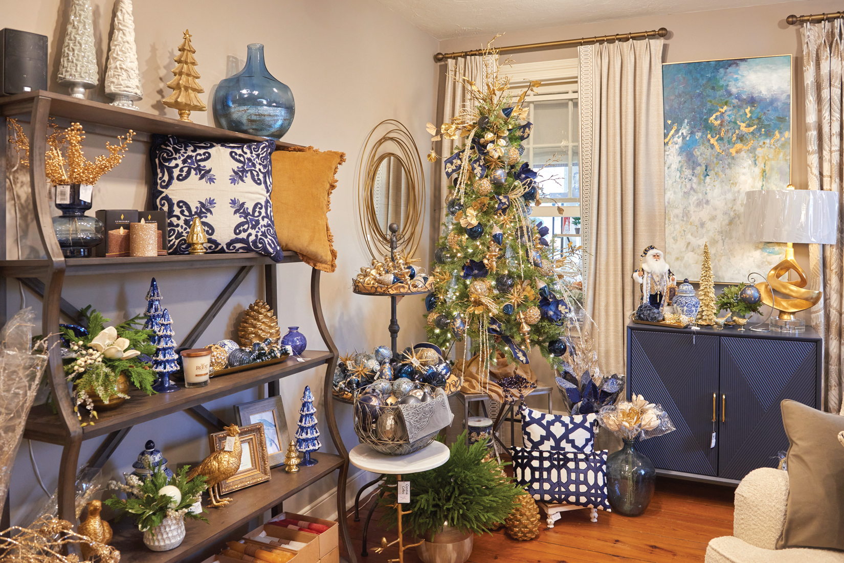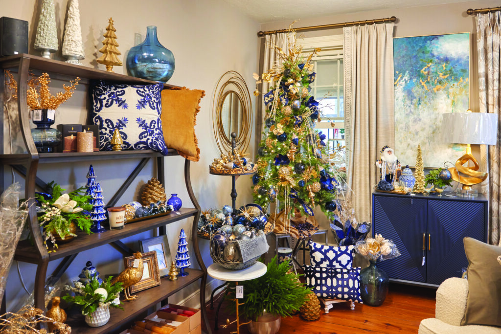 Blue & White: Those who love Coastal décor (or Penn State) will be glad to know that blue-and-white color schemes will be on trend for the holidays. HDI had a room at the shop geared to the color scheme last year, while Andrew decorates his white tree with Wedgewood ornaments.