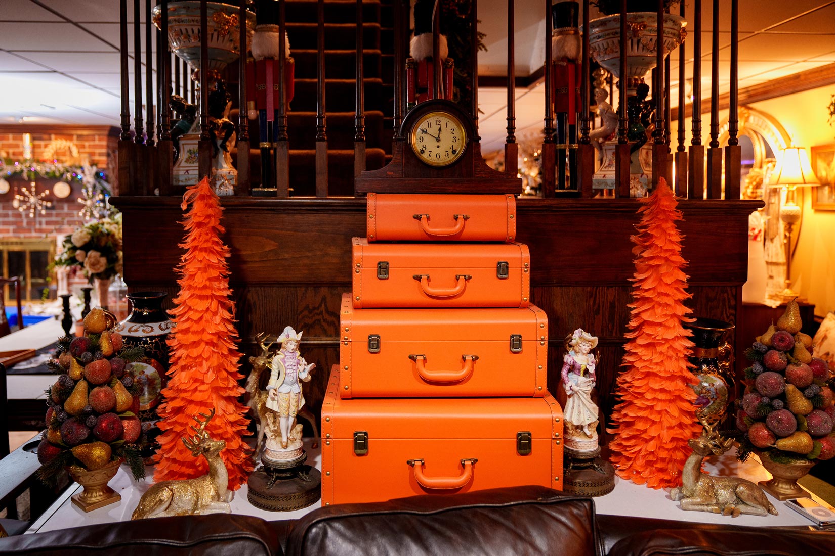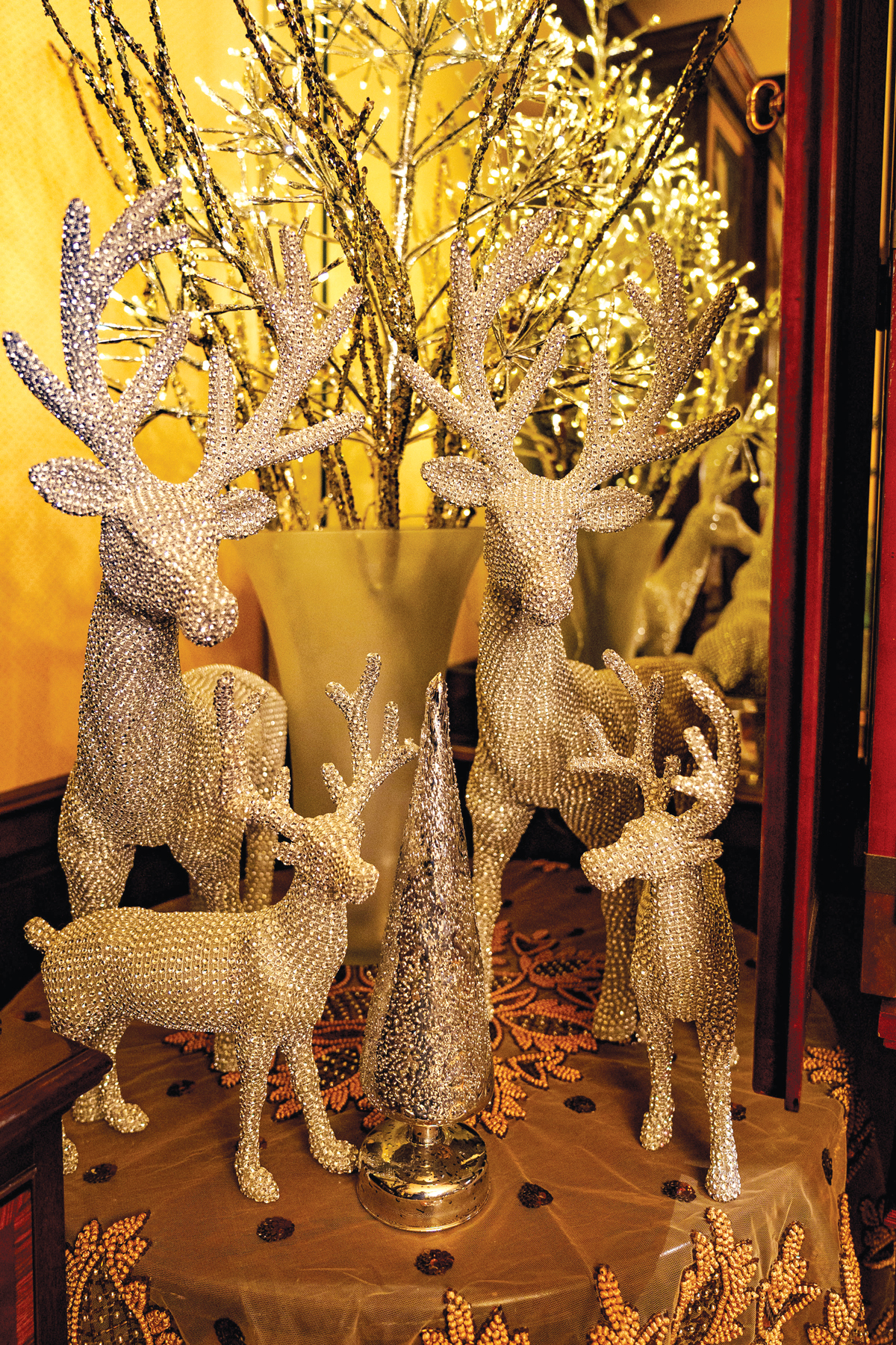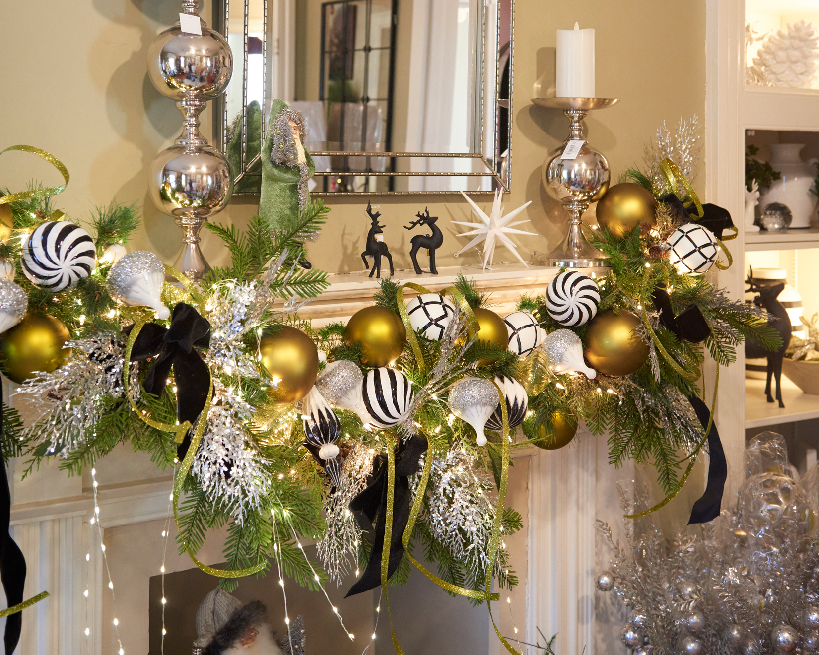 Don’t Forget: Decking the halls extends to staircases, mantels, tabletops and chandeliers!