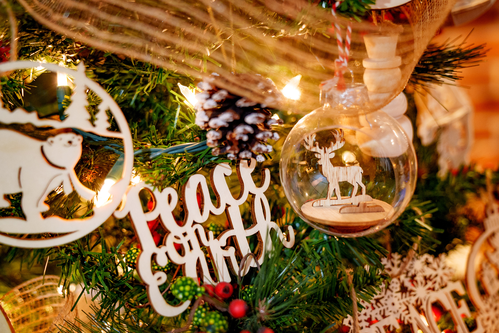 Artsy & Artisan: From ornaments and other holiday décor, there’s just something about items that are handcrafted. One of Andrew’s trees is decorated with wooden ornaments made in Germany.