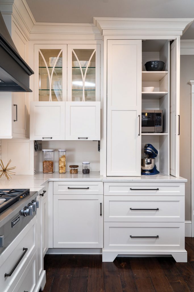 Both Eileen and Aaron agree that clients who lead busy lives are desirous of having well-organized and clutter-free kitchens. “I’m a firm believer in ‘a place for everything and everything in its place,’” says Eileen.