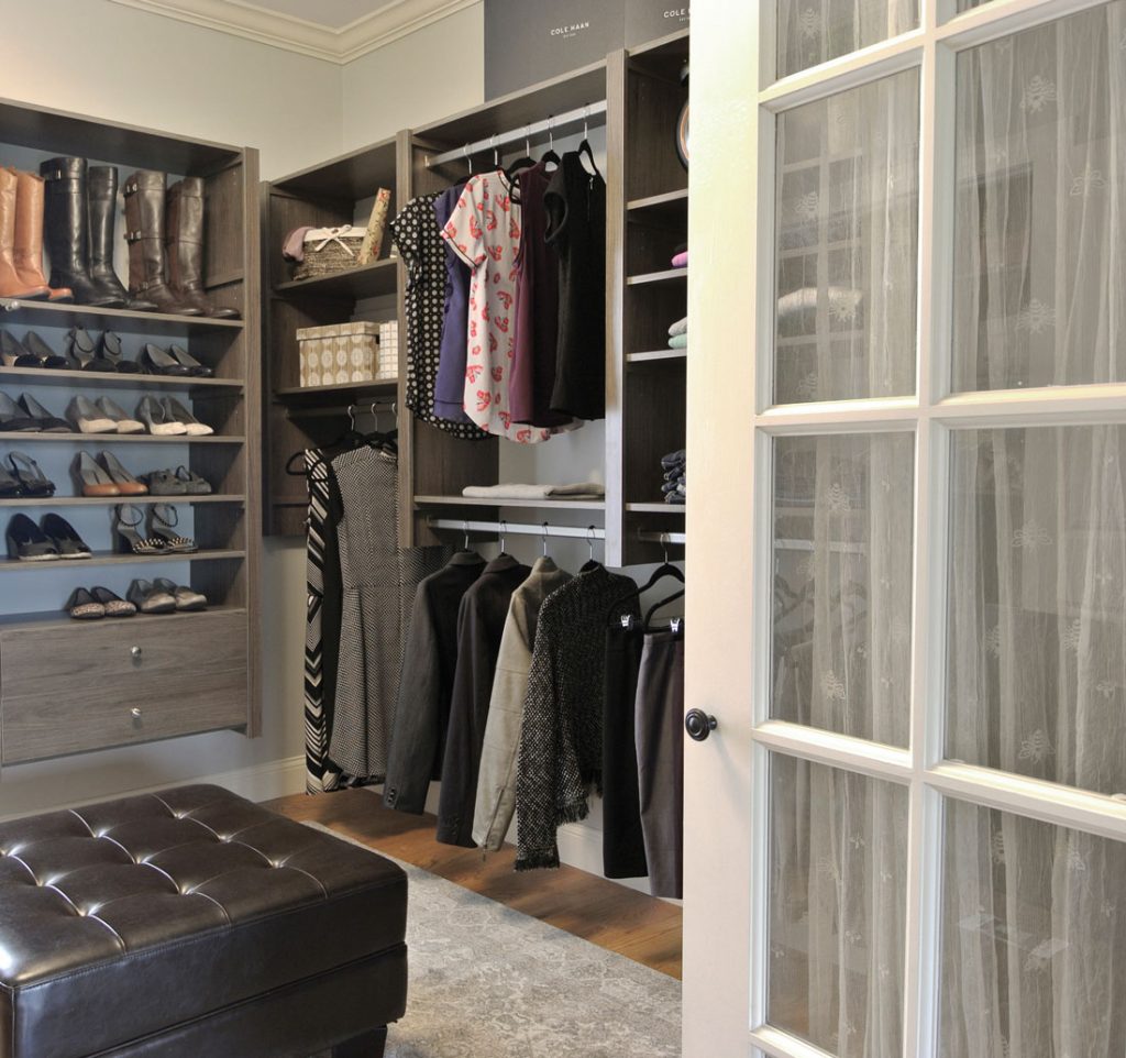 The desire for organization now extends into bedrooms, where closets are equipped with cabinetry, shelves and cubbies that keep clothing and accessories neat and easy to access. Photo courtesy of KbE.