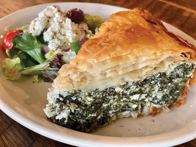 The menu features a wide array of items and everything is made from scratch including mashed potatoes and meatloaf. Breakfast, lunch and dinner are served daily. The restaurant has become known for its buttermilk pancakes, 8-oz. charbroiled burgers and summer salads. Other popular items include baked chicken pie, stuffed-flounder Florentine, honey-garlic chicken, Asian glazed ribs, prime rib (weekends only) and spinach-artichoke chicken breast. Greek dishes such as spinach pie (spanakopita) are also a specialty of the house. Be sure to save some room for dessert!