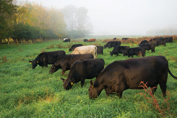 Nathan’s 50-acre farm, which sits between Route 441 and the Susquehanna River just north of Marietta, boasts its own little ecosystem, as three of the USDA’s Plant Hardiness Zones converge in the area. On the day we visited late last October, heavy fog was rolling across the fields, and the grass was heavy with dew. Nathan describes the soil as “black and sandy, with some limestone.” He points out that it “grows good grass,” which is the main – as in 100% – component of his Lowline Black Angus herd’s diet.