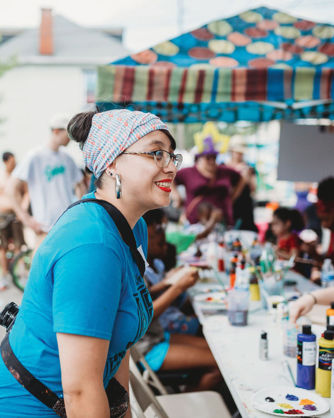 Much of Salina’s work has been focused in the southern end of the city and the neighborhoods in which she was raised. Through LPA, she has co-created a mural on the side of the Water Street Mission building entitled “This Neighborhood is …” Right across the street from the mural – at the newly renamed Culliton Park – she has also hosted Art Pop events and free art and craft workshops through LPA’s PACE program. “The work in Culliton Park has been challenging because of the history of trauma on Water Street. So many folks I interact with have heavy burdens, and it’s amazing to see how a listening ear and some paint can shift attitudes,” she says of her time there. “I see folks living in transition in the park or battling addiction alongside some of the most adorable and enthusiastic kids ever. There’s a part of me that wants to help everyone, but I know I can’t,” she explains.