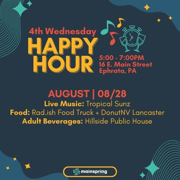 It just keeps getting better, Ephrata. Join us for the happiest two hours every fourth Wednesday in May, June, July, and August from 5-7pm. Celebrate our community with delicious food, live music, and refreshing beverages to wet your whistle. This is an ALL-AGES event! Please note that you must be 21+ to enjoy alcoholic beverages, and IDs will be checked upon entry. Let’s make it a summer to remember! Special live music performance by Tropical Sunz.