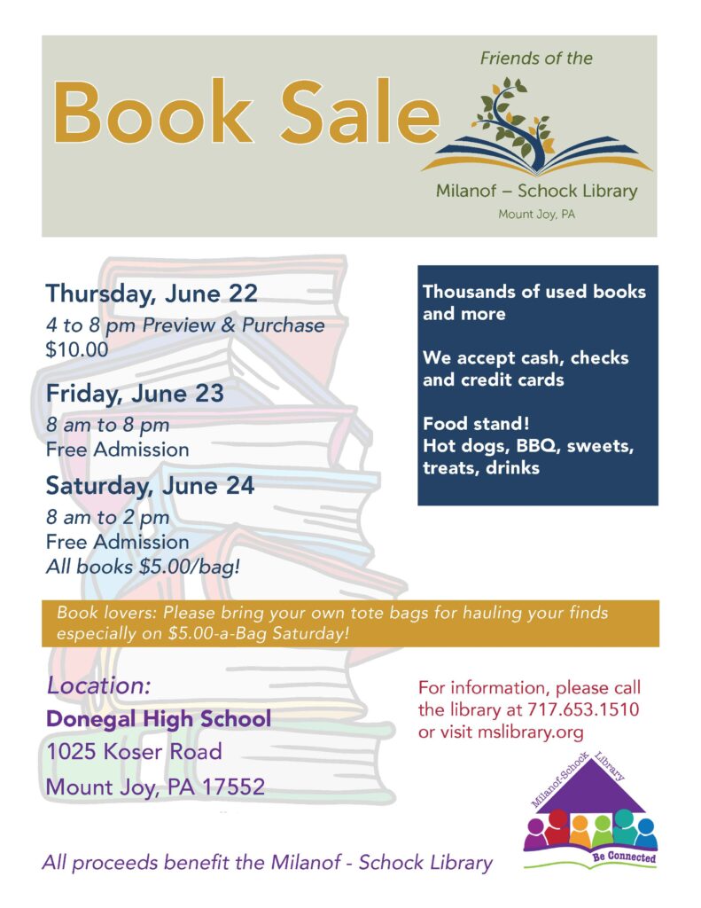 The Friends of the Milanof-Schock Library host its annual Spring Book Sale.