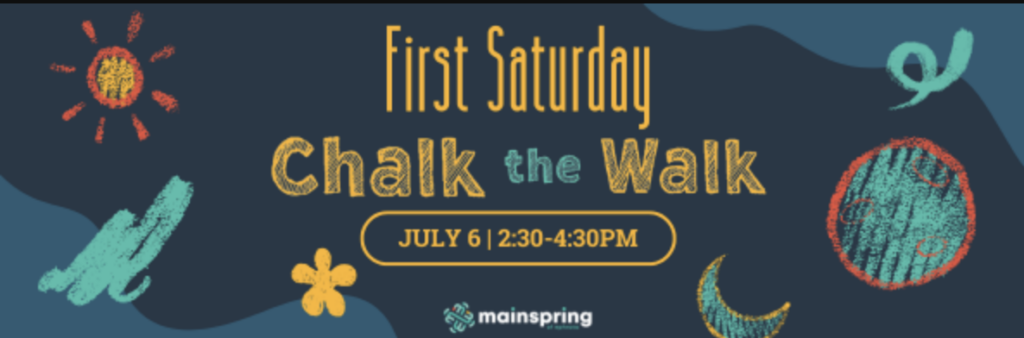 Gather your friends, family, groups, or just fly solo and sign up to participate in this exciting event. Mainspring will provide the pastels and blending foam, so all you need to bring is your creativity and enthusiasm. Stop by the Whistle Stop Plaza to register, pick up your chalk, and receive your designated 5′ x 5′ space. Feeling ambitious? Don’t be shy! While each space is 5′ x 5′, groups can snag a larger section – think 5′ x 20′ or more! Just let us know when you register so we can plan accordingly.