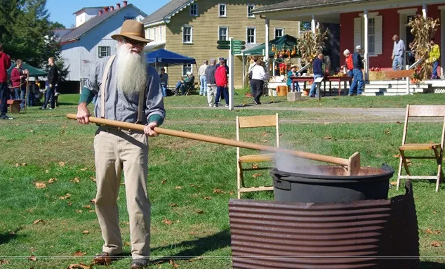 Tickets will be available at the front gate for the return of Harvest Days, expected to be bigger and better than ever! A culmination of a year’s worth of hard work, Harvest Days is Landis Valley’s oldest and largest family event. Come for demonstrations, exhibits, live music, and children’s activities. Taste heirloom varieties of apples and watch them become apple butter and cider. Witness wool go from sheep to shawl. Pick a pumpkin of your very own and then decorate it. All of this and more are packed into two fun-filled days. This year’s event offers food demonstrations (apple butter, sauerkraut, processing pork, bake oven and hearth cooking); craft demonstrations (coopering, blacksmith, leather, brooms, pottery, millinery, weaving, woodwork, and more); craft sales (jams & jellies, pottery, soap, candles, and more), our pumpkin patch, and kid’s crafts. Food will be available for purchase on site. Free parking.