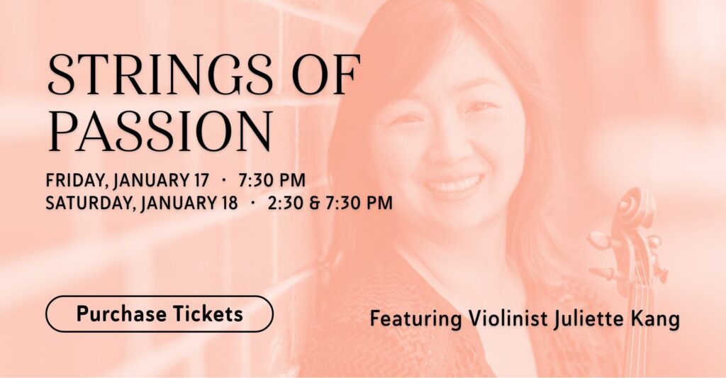 Join us at the Gardner Theatre for a passionate performance featuring violinist Juliette Kang and the incredible strings of the Lancaster Symphony. The concert’s diverse line-up includes Caroline Shaw’s Entr’acte, Marjan Mozetich’s Affairs of the Heart, Respighi’s Ancient Airs and Dances, Suite No. 3, and Bach’s Brandenburg Concerto No. 3.