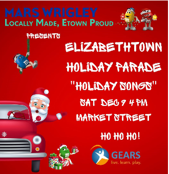 This Elizabethtown tradition not to be missed is presented by locally made Mars Wrigley. The theme for the parade this year is ‘Holiday Songs’ and will travel down Market Street from College Avenue to the Square. Visit G.E.A.R.S. website for more information or a parade entry application.