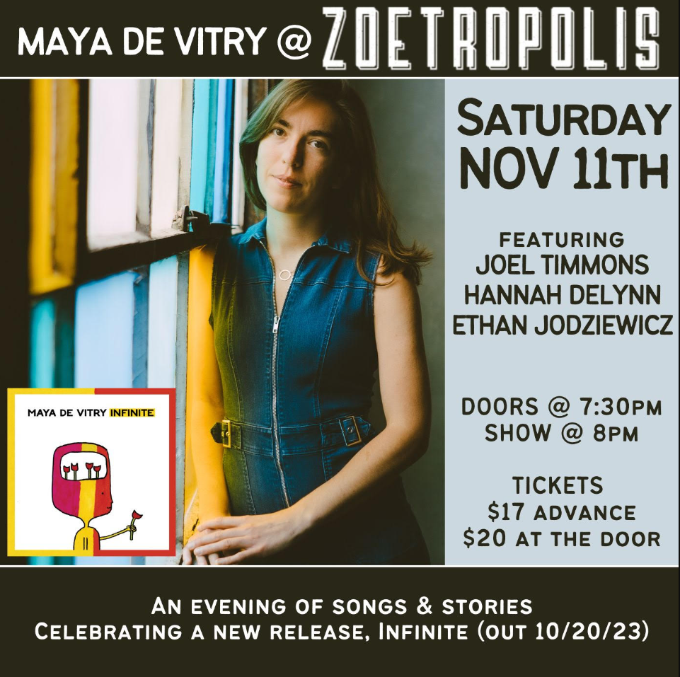 “Maya de Vitry’s dynamic and vibrant voice seems to rise out of some necessity of bringing songs to life, embracing listeners with what Folk Alley calls a “soulful intimacy.” She grew up in a musical family in Lancaster County, Pennsylvania, understanding music to be a place of gathering, a way to spend a summer night around a campfire. Maya first traveled and performed as a fiddling street musician, and then in bars, theaters, and on festival stages as a founding member of The Stray Birds. When the band parted ways in 2018, Maya embarked on an ever-evolving musical path of solo work and new collaborations. Her recordings and live performances embody both sincerity and playfulness, and a compelling reverence for the power of songs to be a place of gathering – whether played on stage, or around a campfire..” Visit website for further details.