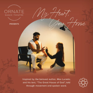 Inspired by the beloved author, Max Lucado, and his text, The Great House of God, told through movement and spoken word. This narrated dance performance takes a creative look into each space of the heart as if it was a house. Each room holds a rich encounter with a loving father, friend, counselor, and guide. Our hope is that audiences leave feeling hopeful that each space of their own heart can be transformed.